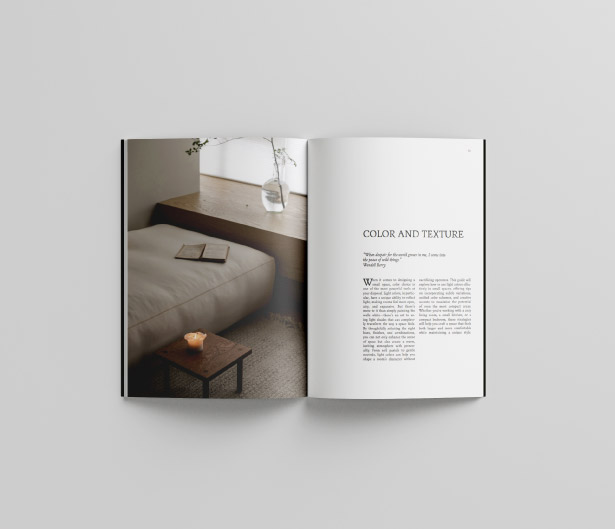 “Designing in Small Spaces” is a book about something that I enjoy: maximizing space in a tasteful way in interior design. This project is near to my heart because calm and efficient design is something that I am passionate about. This book contains 11 chapters, each showing a different design principle, giving practical tips and examples of the specified focus. Complete with imagery from real-life designs, this book offers the aesthetic of a display book without losing functionality. It is meant to be read verbally and visually in equal parts, using all the senses to convey its meaning to the reader.