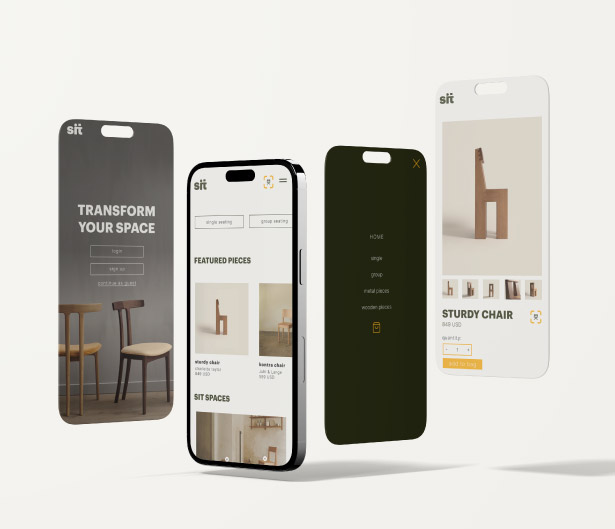 This project went along well with my “Designing in Small Spaces” book and could be part of the same company. I used Figma to fully design and publish a responsive website and app design that mirrored the mood of the company. The calm, minimal design represents SIT well, empodying their commitment to quality, lasting furniture.