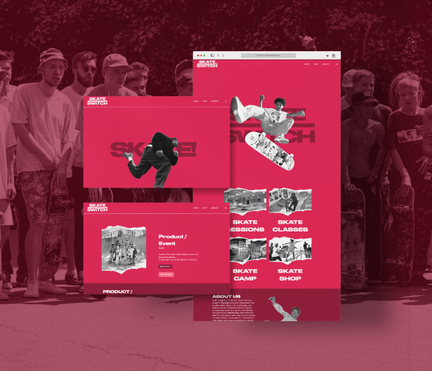 This project was a rebranding and web design of a local skate shop in Pittsburgh. The previous website was outdated and inefficient, so I redesigned it to resonate with skate culture and youth. I went with a bold color palette and paper cutouts even in the digital branding to capture attention.